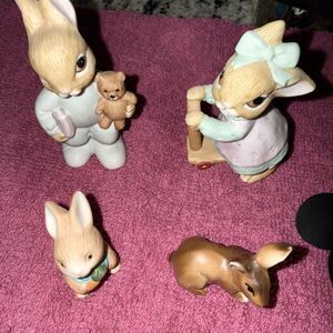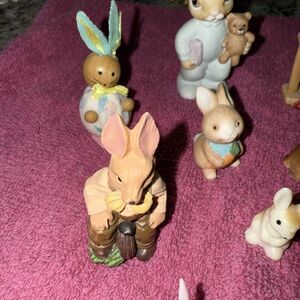 This delightful collection of small pet toys features charming rabbit figurines in white and brown hues. Each piece showcases unique poses, from sitting upright to hopping, adding a playful touch to any space. Perfect for small pet enthusiasts and collectors.