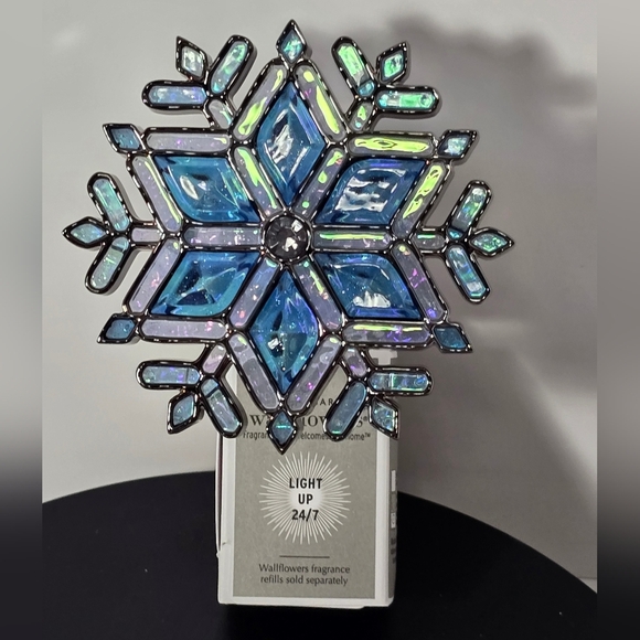 White barn bath & body works stained glass snowflake wallflower plug light up new 2024
