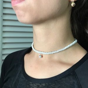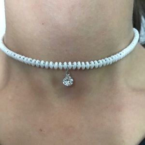 Adjustable white beaded choker. Swarovski Crystal . Currently 13 1/2 inches but can add on extender.