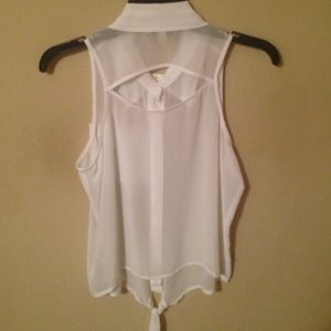 White blouse with bedazzled color. Button up. Tie in the front. Open back.