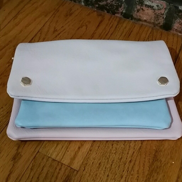 Like new! White, light blue and pink clutch. Has hooks for shoulder strap, however strap not included. 2 zip pockets inside, button closure. So cute for spring and summer!