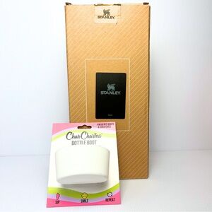 White bottle boot + 40 oz Black Stanley Quencher Flowstate Tumbler