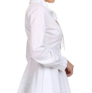 Super cute white bow tie button up. Pair with boyfriend or skinnies for a super cute fit