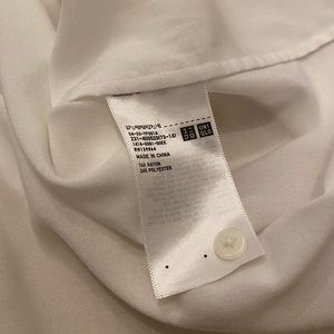 This is a great button down that is flowy/ drapey and not crisp and uncomfortable like so many! Machine washable and perfect staple to your work or professional wardrobe. I also wore this under sweaters for the collared shirt look without feeling the extra bulk of a stiff shirt. Uniqlo size XS