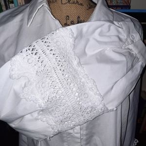 NWOT lovely white button-down with balloon sleeves with lace inserts. Perfect for work or a date, but would look great dressed down with jeans too! Message me for bundles and discounts or make me an offer!