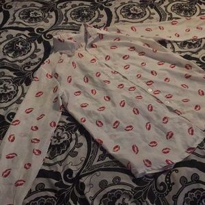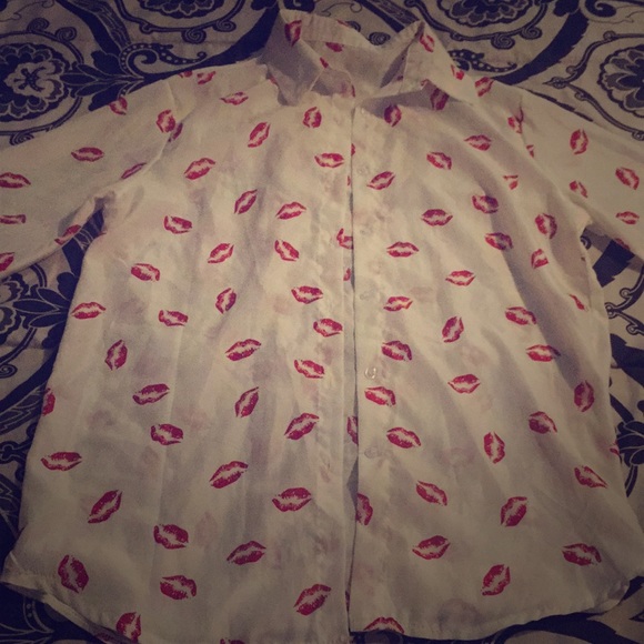 White button up covered in kisses