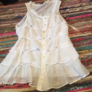 White button up ruffle tank top. Can be worn buttoned or open. From forever 21. Great condition never worn.