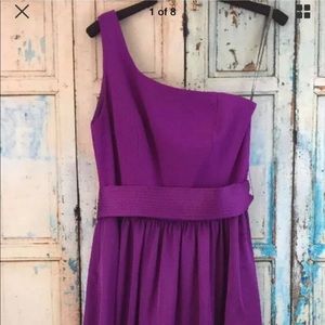 One shoulder, floor length, vibrant purple bridesmaid dress by Vera Wang. Excellent condition.