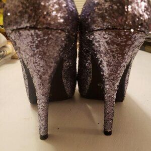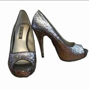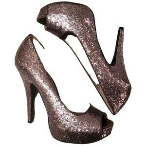 White by Vera Wang Charcoal Silver Glitter Peep Toe Heels Size 8.5