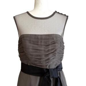 White by Vera Wang Dress Gray Illusion Neckline Sash Belt Formal Size 14 NEW