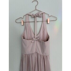 White by Vera Wang Maxi Dress Size 0 Blush Pink Satin Halter Bow Back Bridesmaid