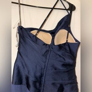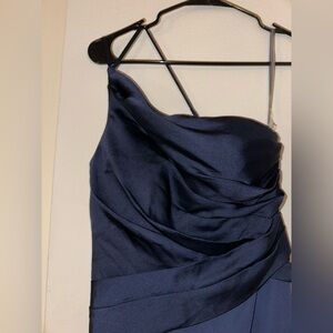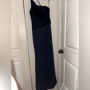 White by Vera Wang Navy one shoulder formal maxi dress sz 0 bridesmaid wedding