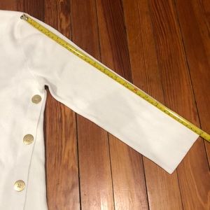 White cable knit crew neck sweater w/ gold buttons