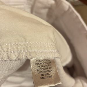 White capris. Cotton/polyester/spandex. Front and back pockets. Two button and zipper close. 18W by cj Banks. Like new. Tan mark on inside by tag. Thank. Only worn a couple times.
