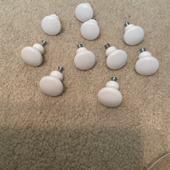 Set of white drawer knobs. Perfect for cabinets or furniture. Perfect condition no chips or cracks Set of 10