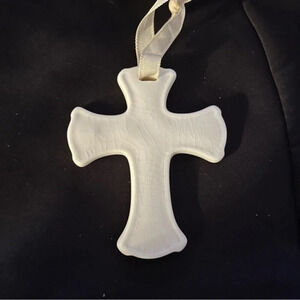 White ceramic cross, about 3 inches tall