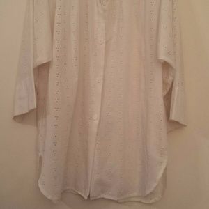 Perfect for wearing over the top for beach and going out with elegant look, Round Hem and 3/4 sleeves, front open button down with side pocket very sexy and stylish sheer Tunic. Made in USA, Hand Wash or dry Clean only.