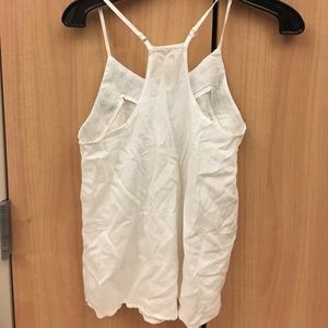 A white tank top with blue embroidery. Size small. Never worn because it didn't fit me. Is a bit see through, but looks great with a bralett.