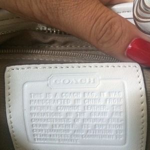 This white coach bag is guaranteed authentic and is in perfect condition! It has a buckle strap and is very sleek and stylish