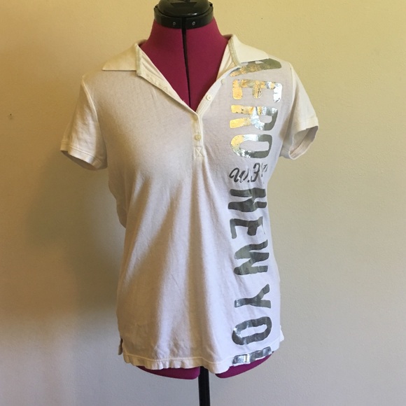 White partial button up tee, great condition.