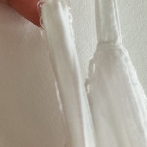 white soft cotton dress with lace and embroidery work ,V neckline ,adjustable strap,elastic in back fits upto 36 to 38