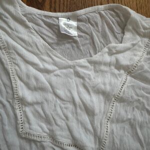 White sheer coverup with lace cutout detail on bottom edge and sleeve cuffs