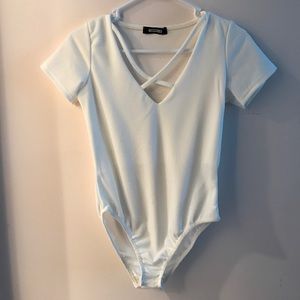 White crisscross bodysuit.
