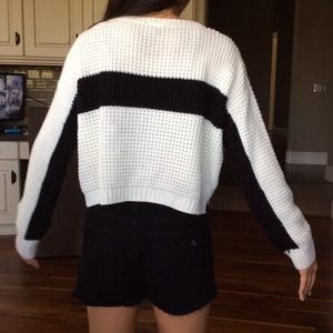 White cropped sweater with black stripe