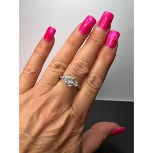 White cubic zirconia platinum over sterling silver ring size 9
