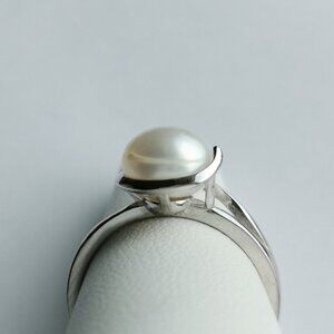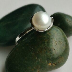 White cultured pearl sterling silver ring size 8