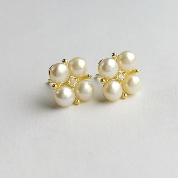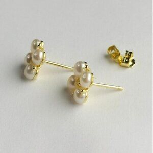White Cultured Freshwater Pearl Cluster Stud Earrings with white sapphire.