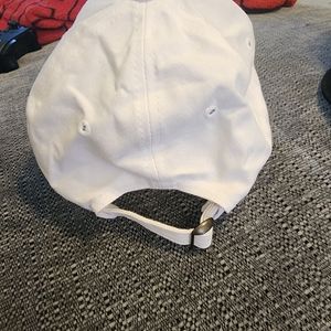 White dad hat embroidered with "the struggle is real". Some staining on the under side of the bill, otherwise in good condition