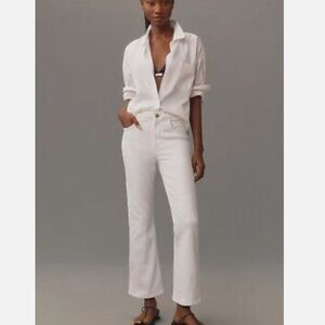 White denim frame jeans with braided waist band #3