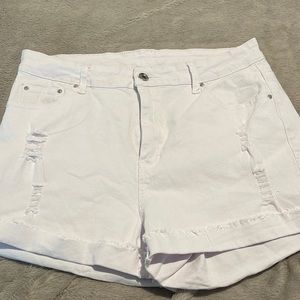 White distressed rolled raw hem shorts from shein have a lot of stretch 85% cotton 13% polyester 2% spandex perfect for summer vacation festival concert date night casual