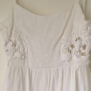 This is an angelic dress for a petite figure. It has embroidery with cut outs on the front/side. It has a slip underneath. I suggest wearing white or black undergarments under it since it can be see through in sunlight. For the chest area I suggest pasties instead of a strapless bra