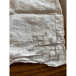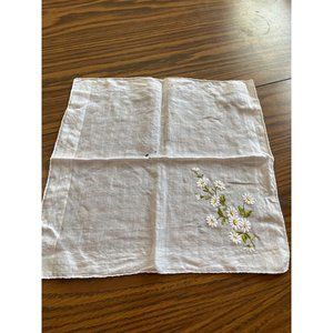 Vintage woman’s white embroidered handkerchiefs. One has an embroidered H initial. One has daisies. Other two abstract. Couple gave some holes, otherwise fair pre-owned condition.
