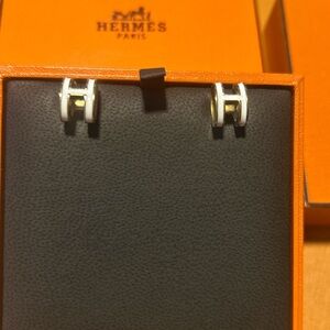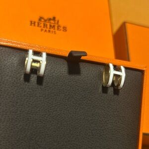 White enamel and 18K titanium H Earrings