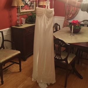 Josh & jazz white evening gown . Beaded one shoulder strap . Size 6