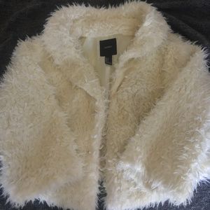 White faux fur coat from Forever 21. Worn once. Super comfortable, warm, and sassy.