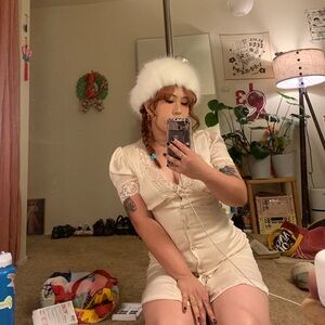 White faux fur hat!