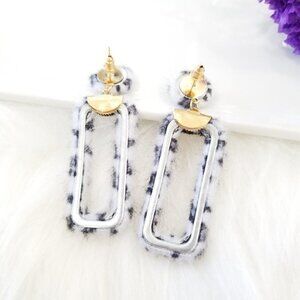 BRAND NEW These white leapord print earrings are made of soft faux fur and have metal backs with gold studs