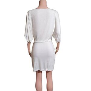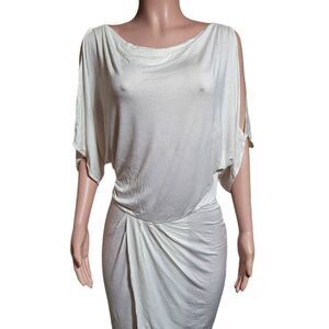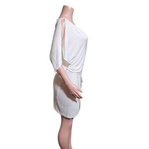 Semi formal crew neck elastic waist with dolman short sleeve dress solid slit elegant. Cute, lightweight fabric with stretch for comfort. Styling no inside tag