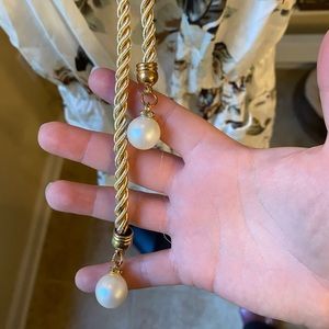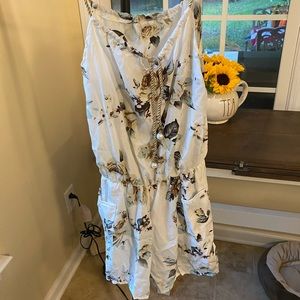 Great green float detail and gold straps. Straps are adjustable and fits a bit baggy. Straps are gold rope with pearl detail. Romper is a bit sheer - you’ll need a bodysuit on underneath.