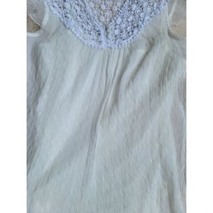 Beautiful flowy white blouse that is 2 shirts. The top shirt is see through and the undershirt is not. Undershirt alone is photos #9-12. Last 4 photos are of top being worn. This is solely for the sale of the white layered blouse. No other items pictured included in sale. No brand on tag. Made in China. Self: 70% Polyester, 30% Nylon. Lining: 100% Polyester. Exclusive of decoration. Hand wash cold water. Do not bleach. Hang dry. Cool iron if needed or dry clean.