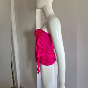 White fox Neon Pink Ruched Tube Top Strapless Size Small