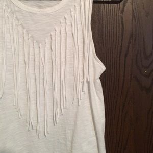 Only worn once! This lightweight tank features long fringe on the front and is simple on the back. It's a size XS but fits more like a Small