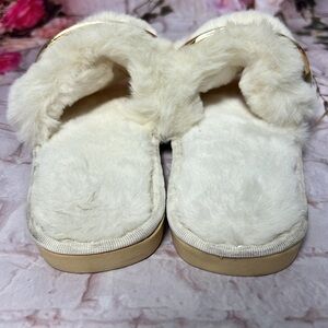 Worn once size 6-7 (36-37) White fur and gold hardware Unsure if real fur