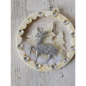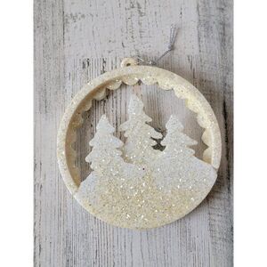 White glitter Circle Forest deer reindeer ornament Xmas decor