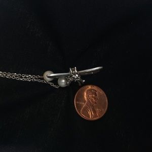 Tiffany inspired and custom created by a jeweler. 14K white gold 3D pendant with amazing detail including 6 legs on the underbody. A small cultured pearl and pear shaped diamond (between 1/4 and 1/3 ct) flank the back.