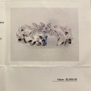 Custom Joseph Jewelry 14k white gold floral eternity band with .20 carats of round diamonds and mil grain edges. Appraisal valued at $2,800. Size 6.5